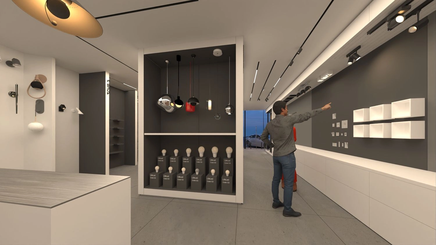 This lighting retail shop was designed to be a professional yet inviting space, catering to both architects and customers. The interior is clean and elegant, allowing the displayed products to shine and help customers visualize how they will look in their own spaces. The shop is meticulously organized, with dedicated sections for each product, ensuring a seamless and intuitive browsing experience. Its thoughtful design strikes a balance between functionality and aesthetics, creating a space that is both practical and inspiring.