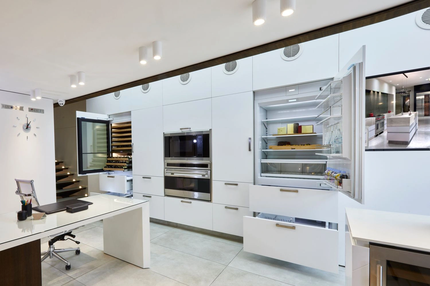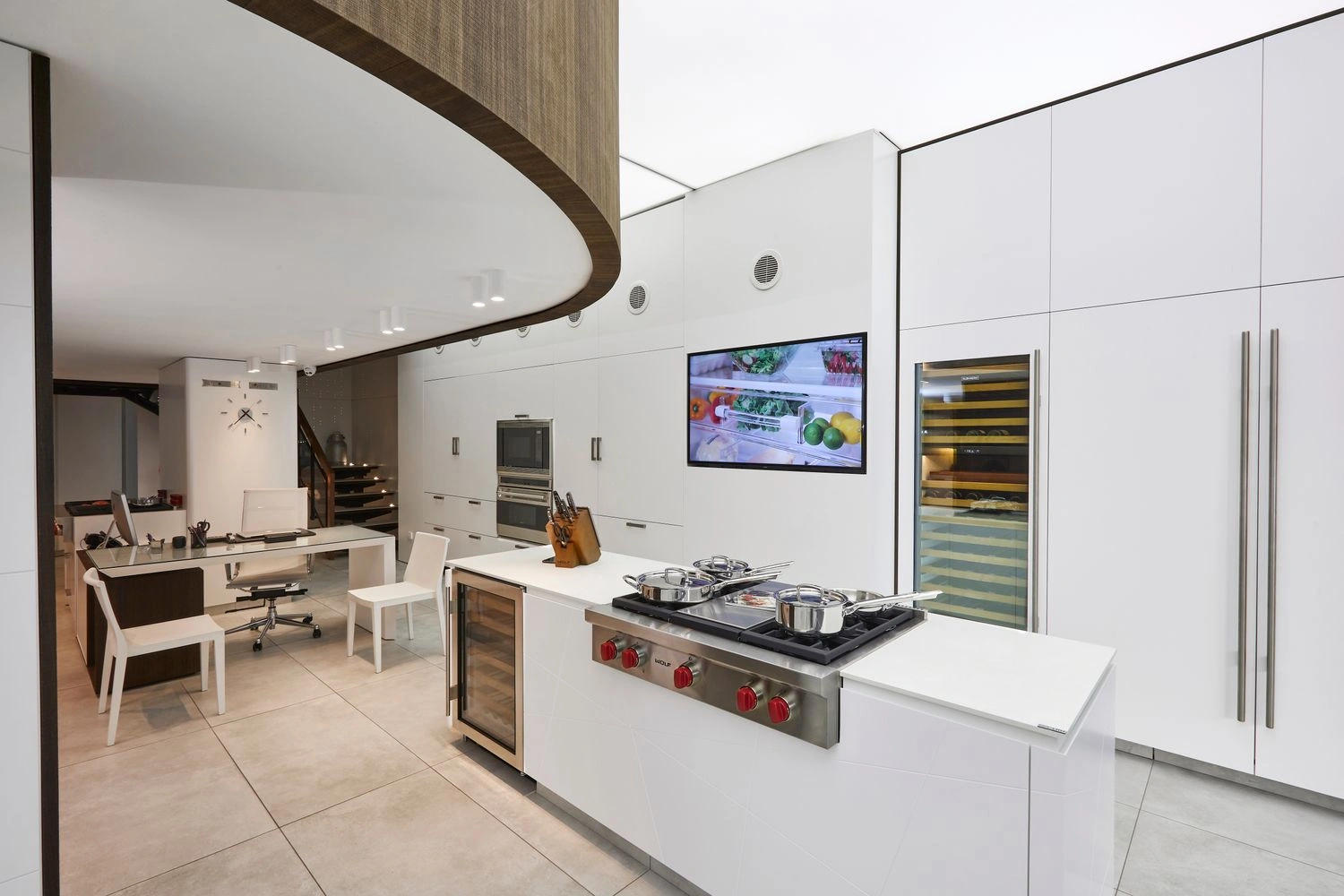 Our latest showroom project highlights the luxury and innovation of Sub-Zero and Wolf kitchen appliances. Designed to showcase these iconic brands within a compact space, the showroom balances functionality with sophistication. Premium materials, elegant finishes, and strategic lighting create a luxurious and inviting atmosphere, emphasizing the craftsmanship of each appliance. The layout optimizes displays of refrigeration, cooking appliances, and integrated solutions, offering customers a firsthand immersive experience. With bright colors and clean lines adding a modern touch, the showroom reflects the brands' elegance and encourages visitors to envision these appliances in their homes